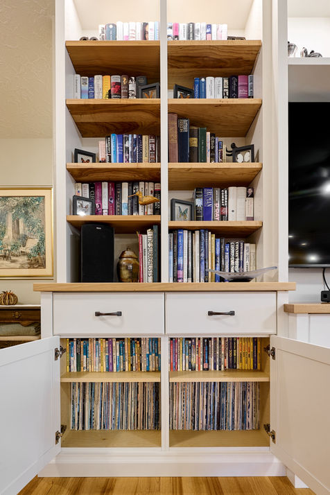 features cabinets built and finished in our shop and installed onsite by Caleb.