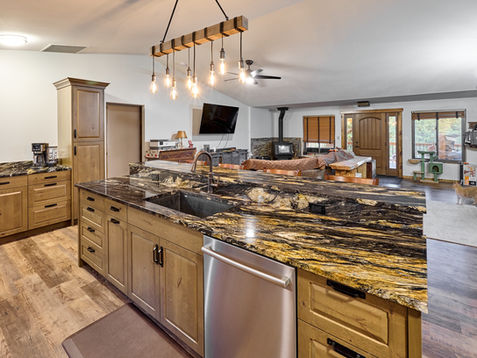 It features rustic alder doors, strikingly beautiful quartz counters & stainless steel appliances